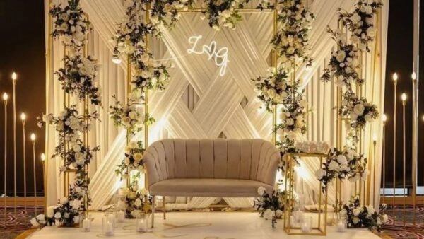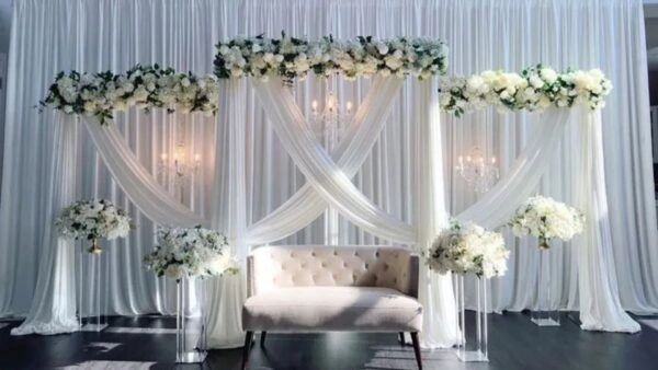 Yes! You can fully customize your stage decoration theme with your favorite colors, flowers, and lights. We’ll even show you a digital preview before setting it up.